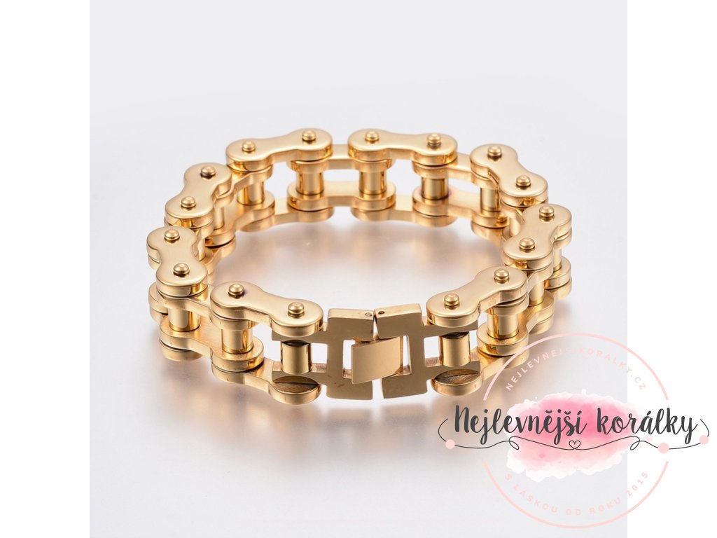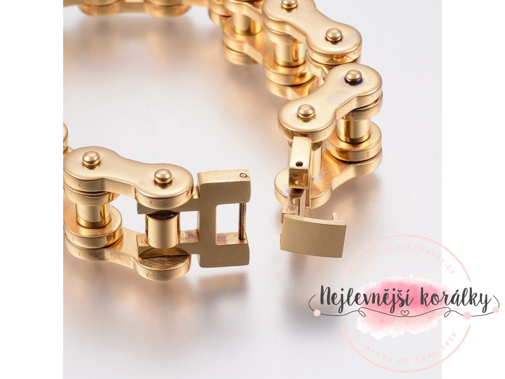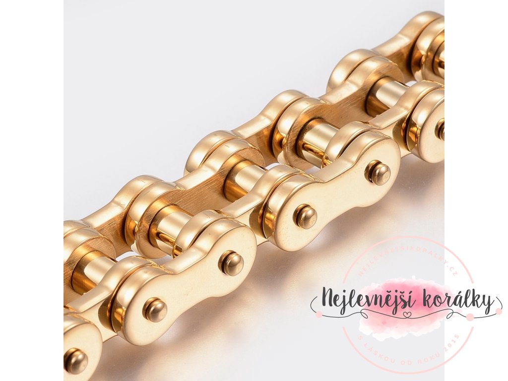 Náramek z nerezové oceli - motocyklový řetěz - zlatý - 23 cm - 1 ks