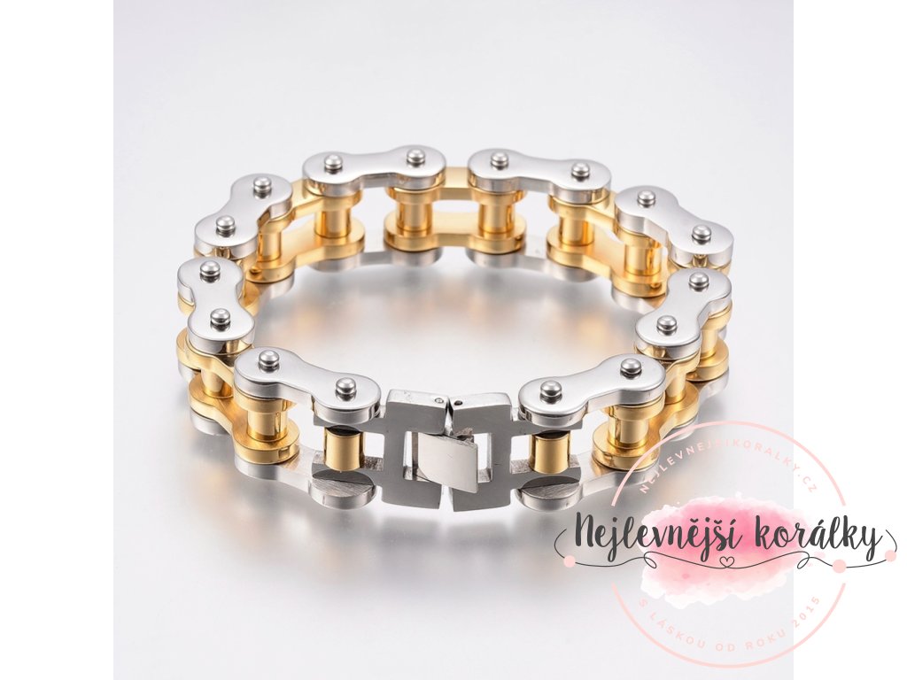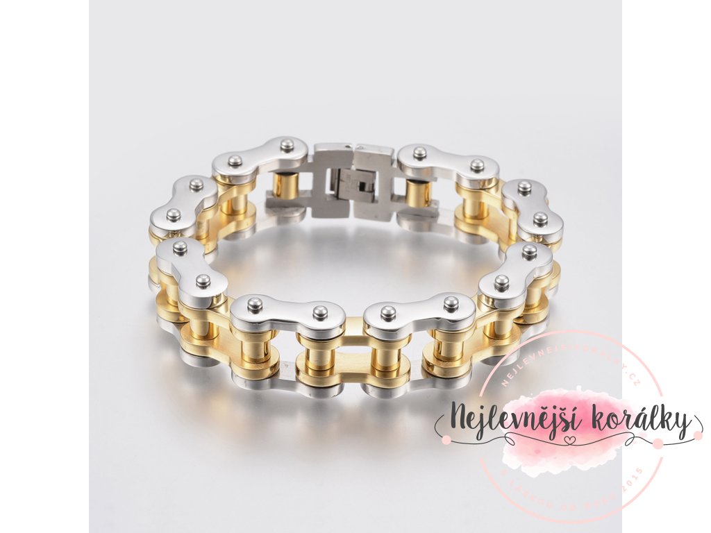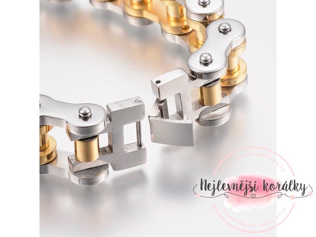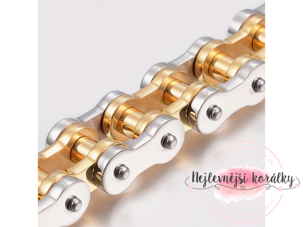 Náramek z nerezové oceli - motocyklový řetěz - zlatý a platinový - 23 cm - 1 ks