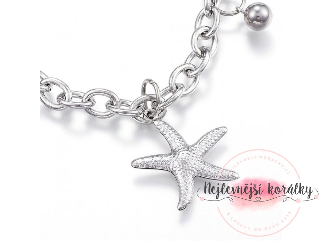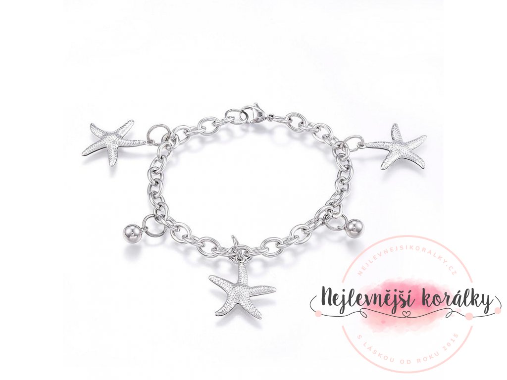Nápadný náramek dekorují přívěsky ve tvaru mořských hvězdic.