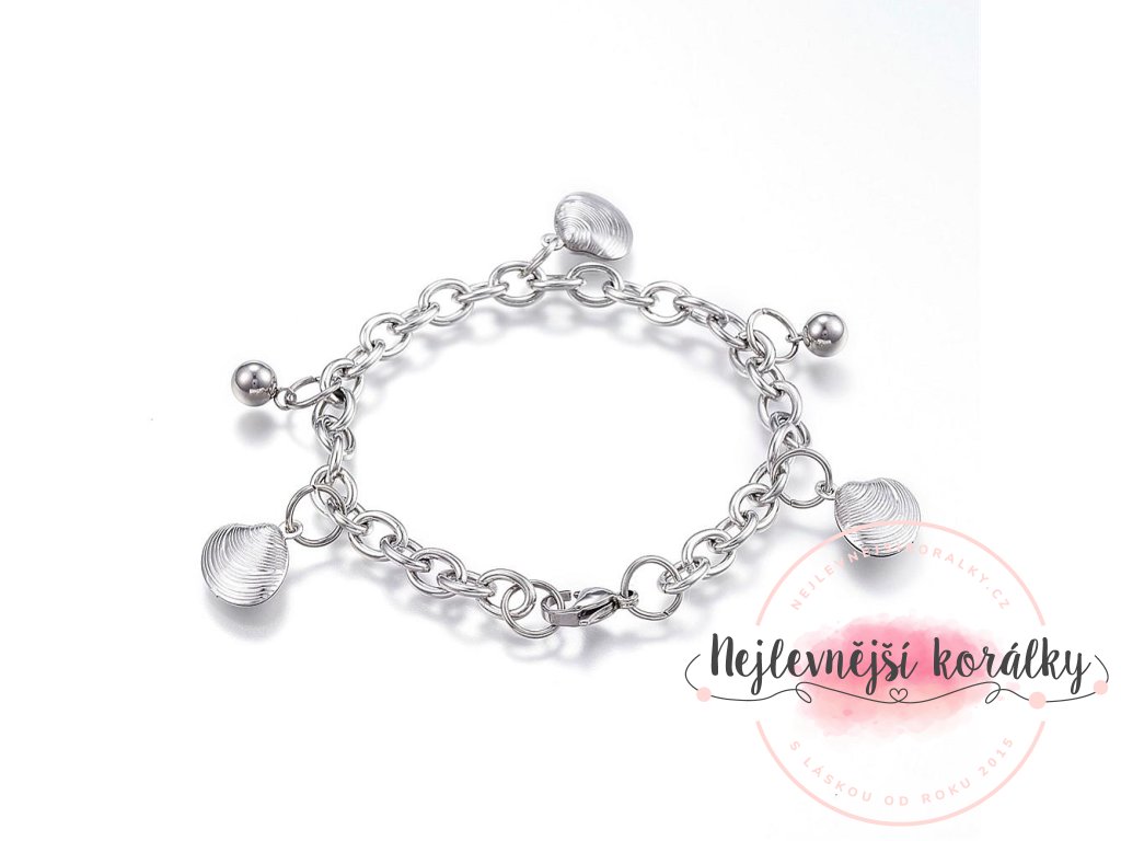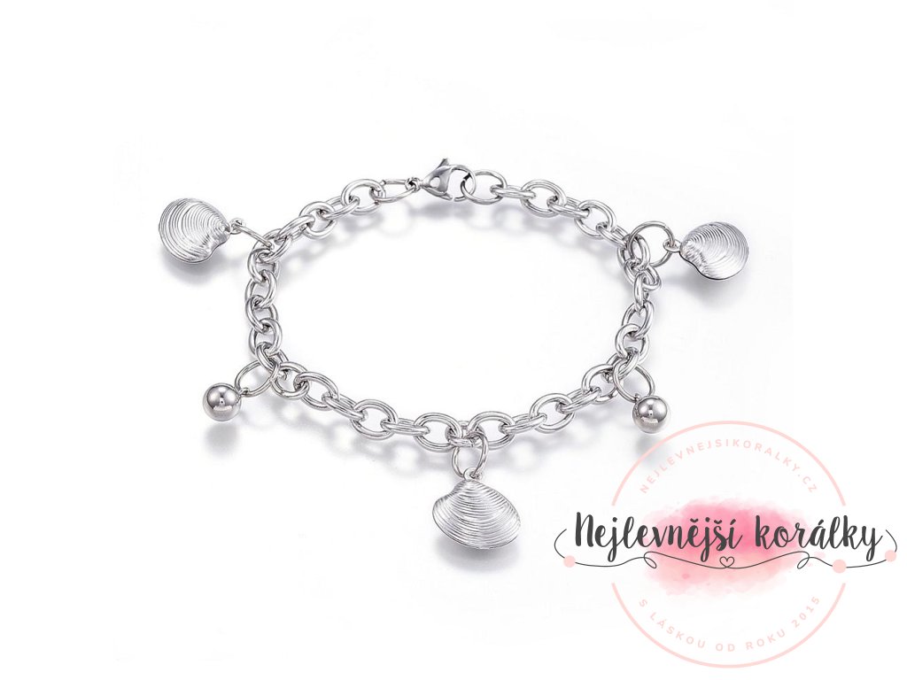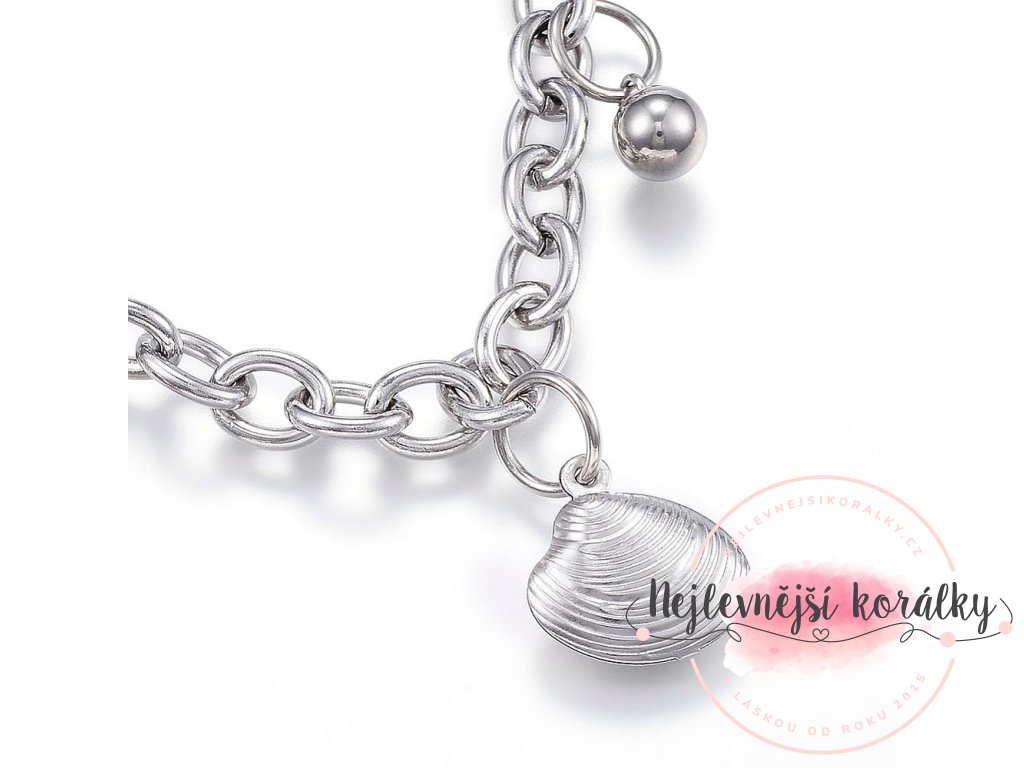 Náramek z nerezové oceli s mušlemi - platinový - 19 cm - 1 ks