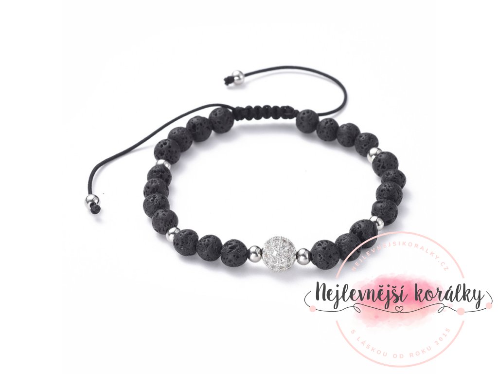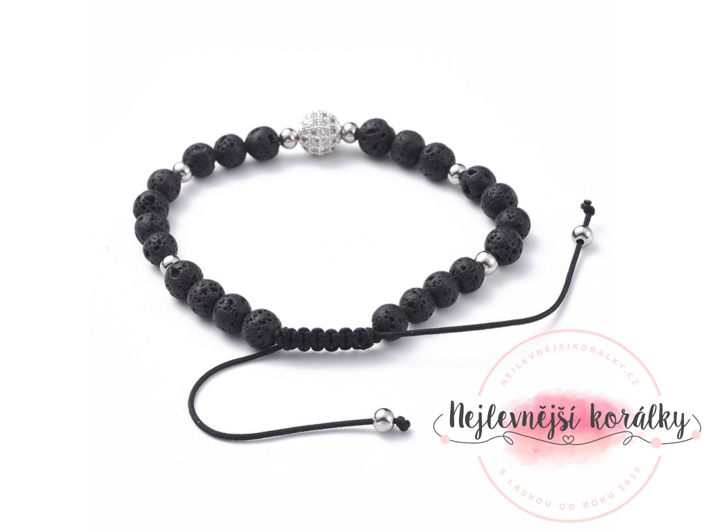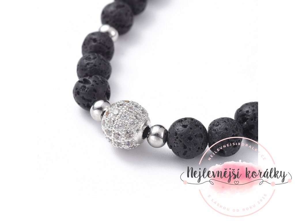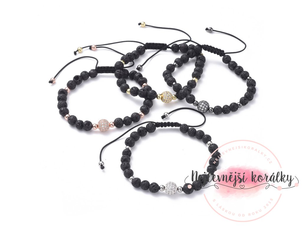 Náramek Globe v různém provedení je vyroben z přírodní lávy a korálku s kubickými zirkony.