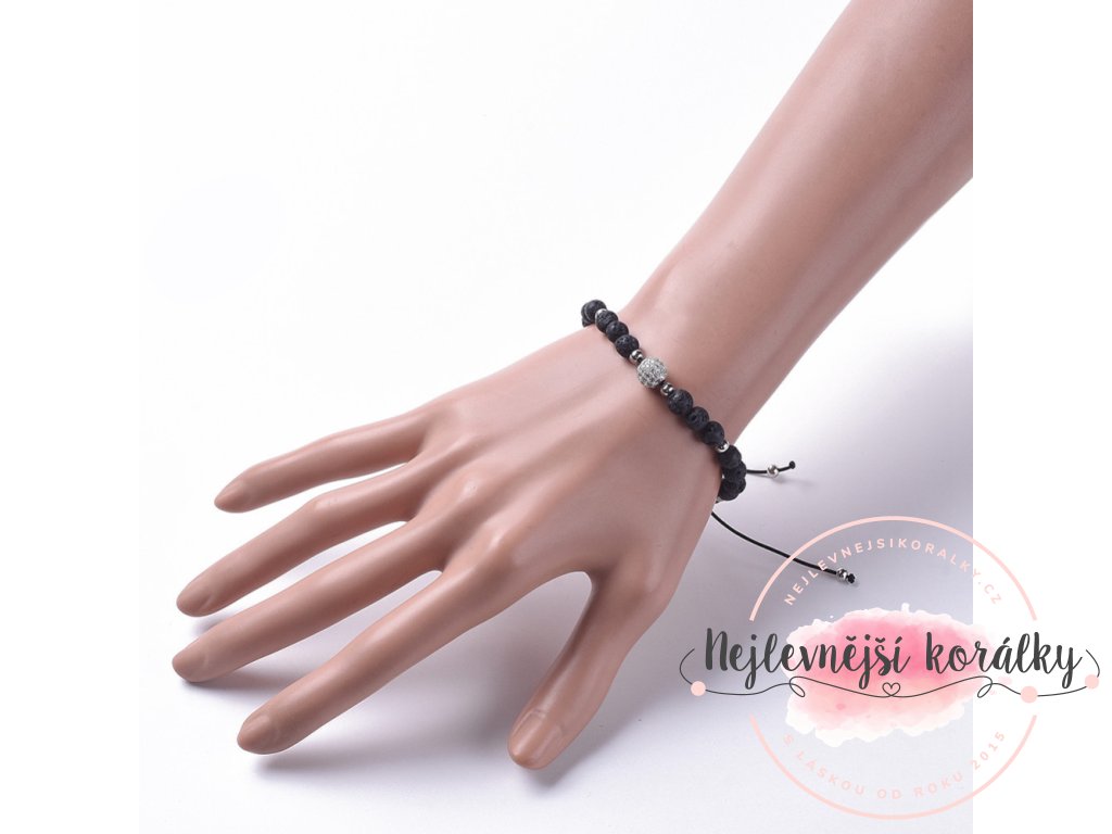 Náramek z přírodní lávy - Globe - černý - 1 ks