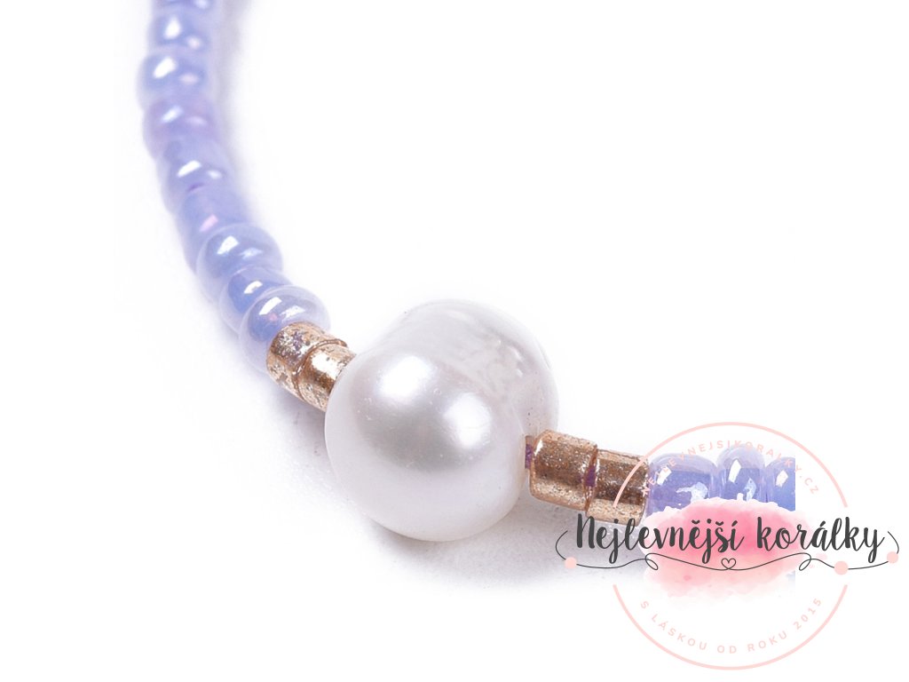 Stylový náramek je zdoben skleněnými korálky v bílém provedení a zlatými skleněnými rokajly a sladkovodní perlou třídy A!