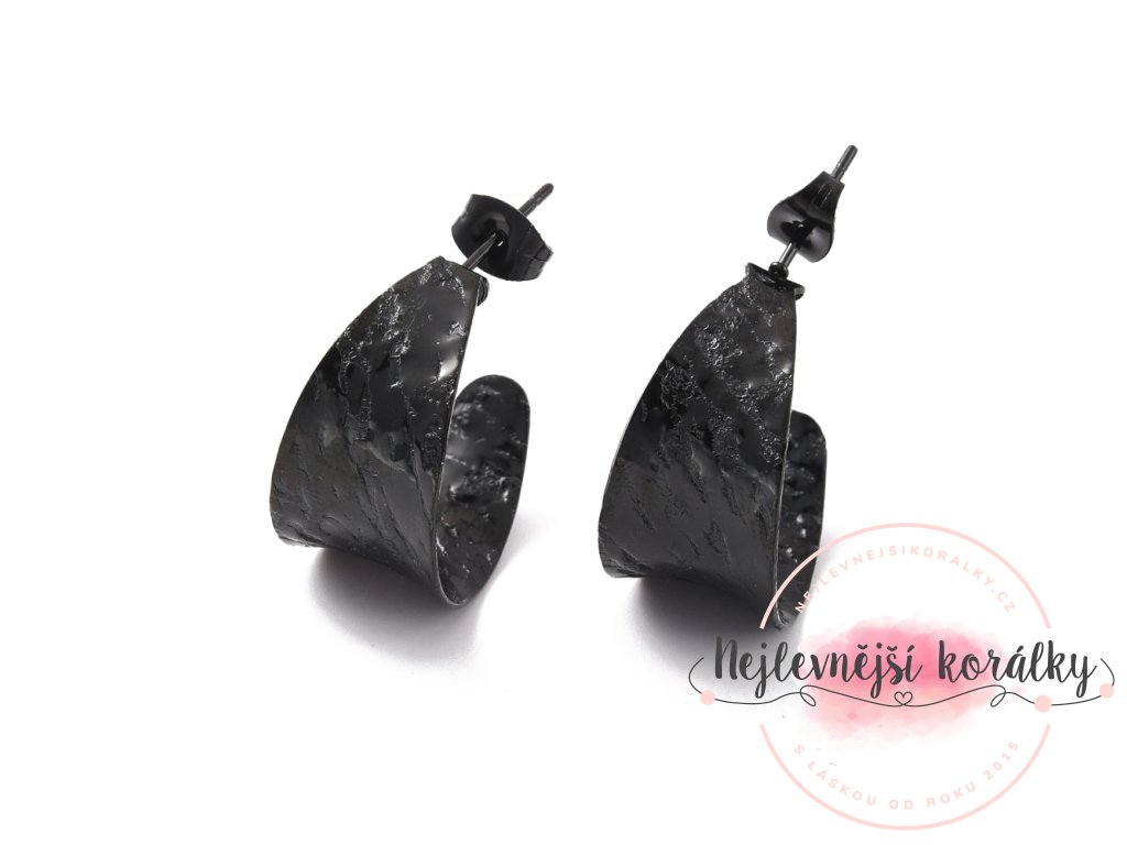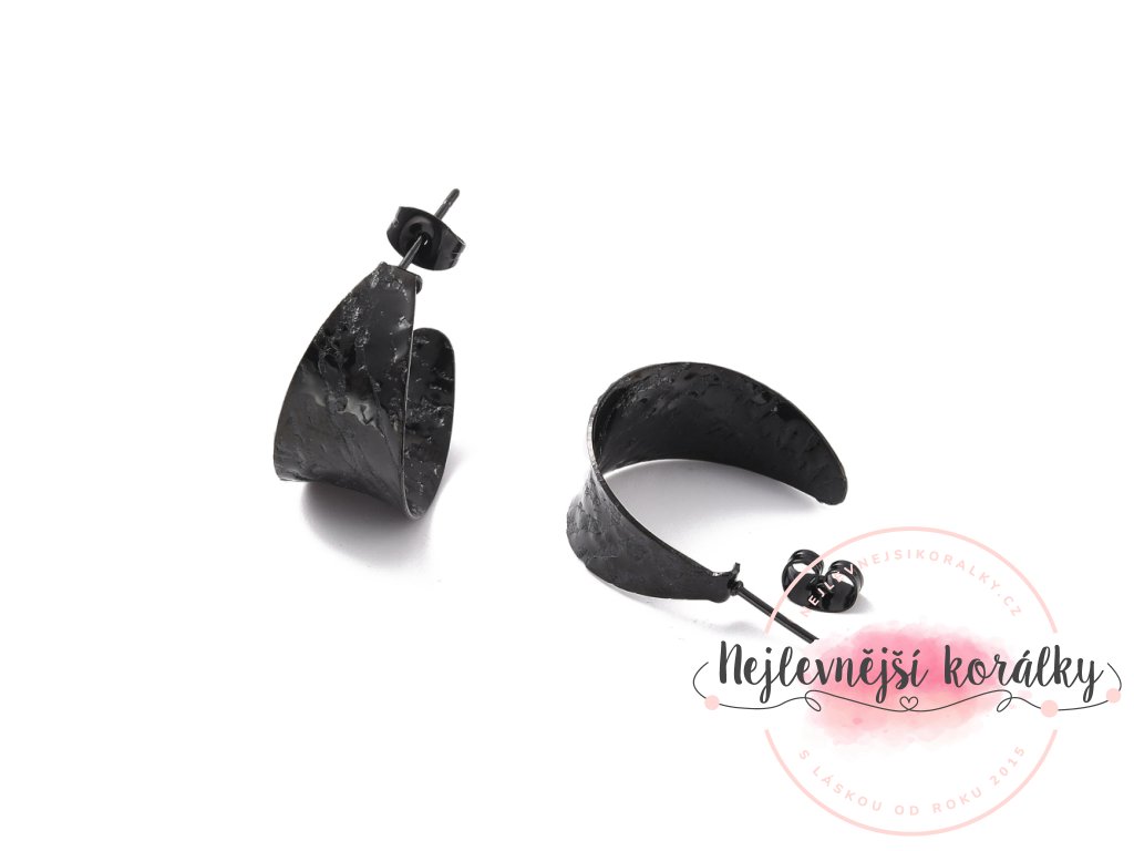 Náušnice z nerezové oceli -půlkruhové - černé- 1 pár