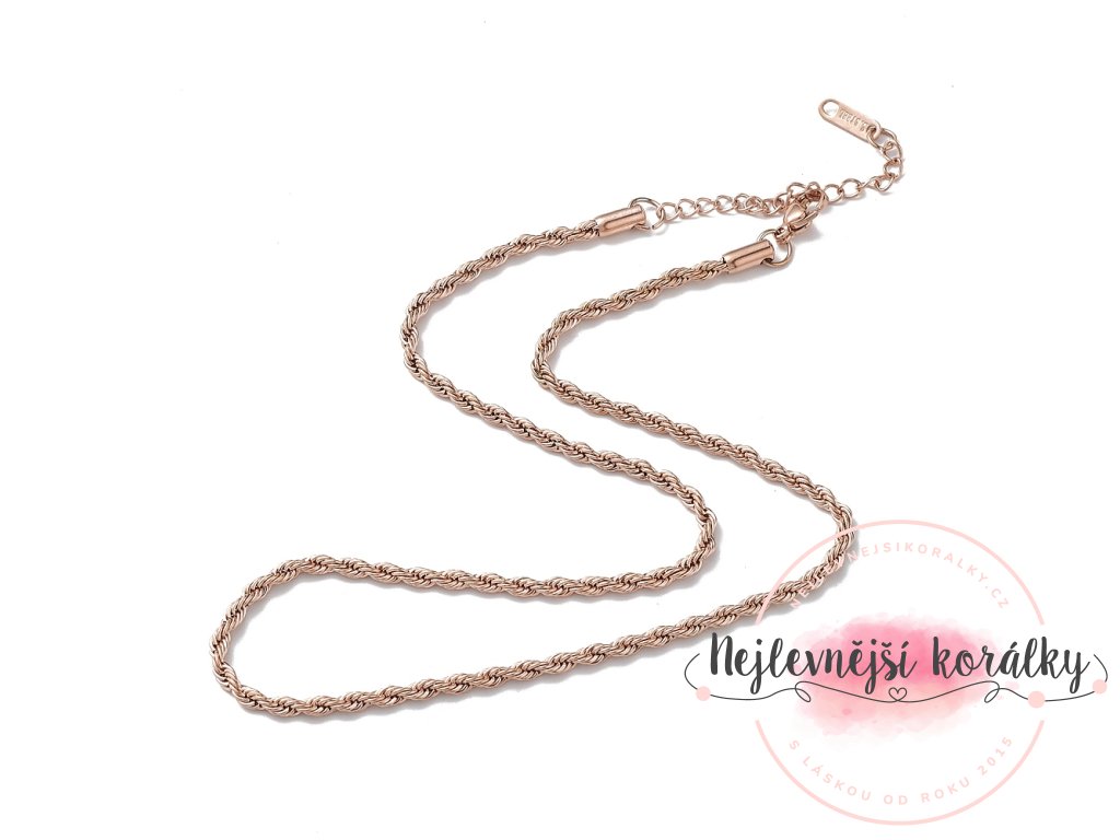 Nerezový náhrdelník s řetízkem ve tvaru lana - růžově zlatý - 40 cm - 1 ks