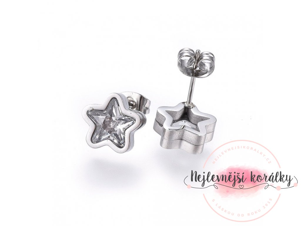 Set řetízku, náramku a náušnic z nerezové oceli - hvězda s kubickým zirkonem - stříbrný - 43 cm ; 18 cm - 1 ks