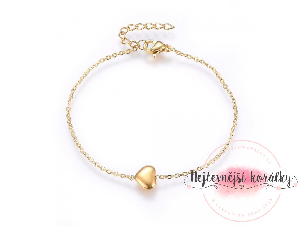 Set řetízku, náramku a náušnic z nerezové oceli - zlatý - srdce - 43 cm ; 17 cm ; 7 x 9 x 2,5 mm - 1 ks