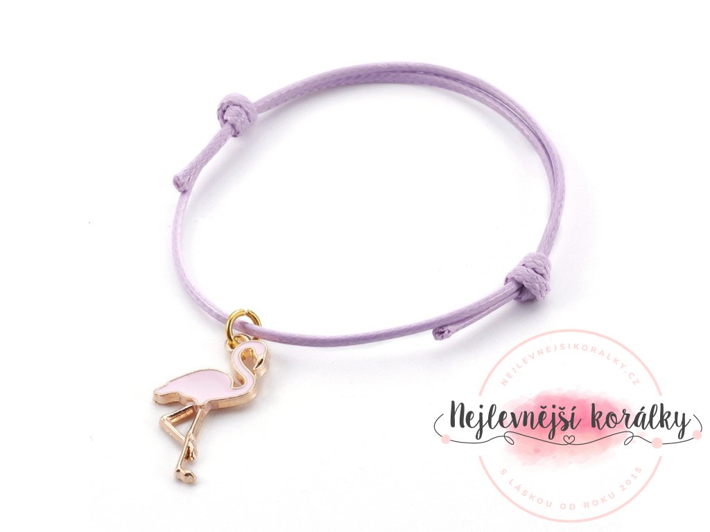 Šňůrkový náramek s plameňákem - různá provedení - ∅ 4 ~ 8 cm - 1 ks