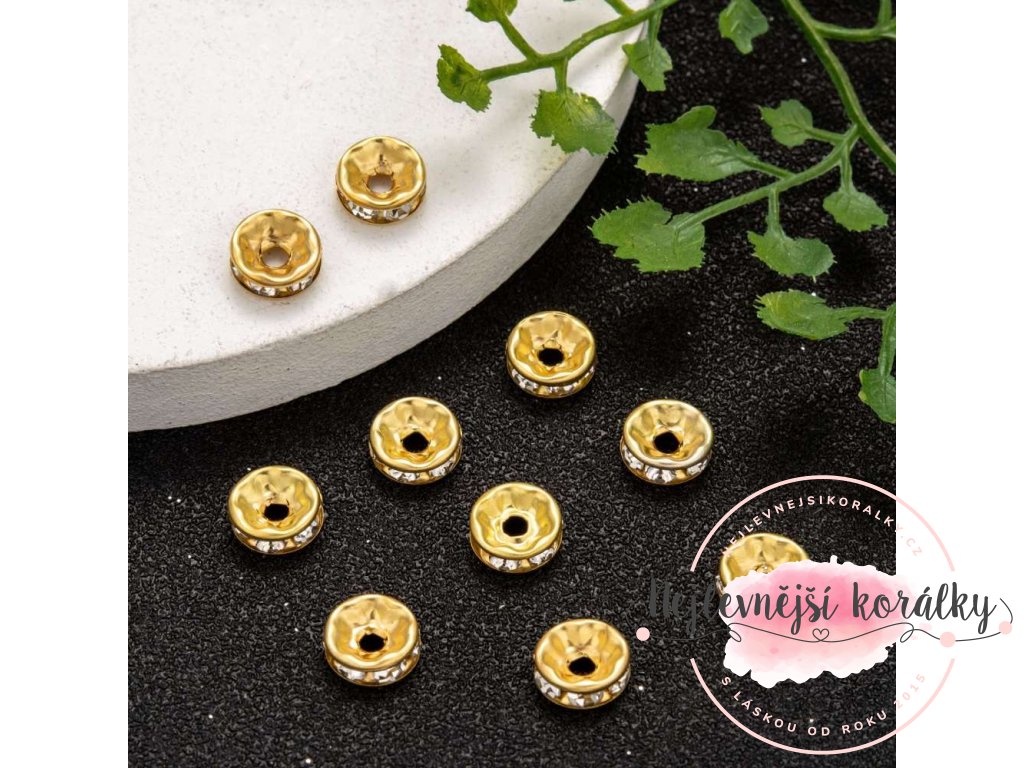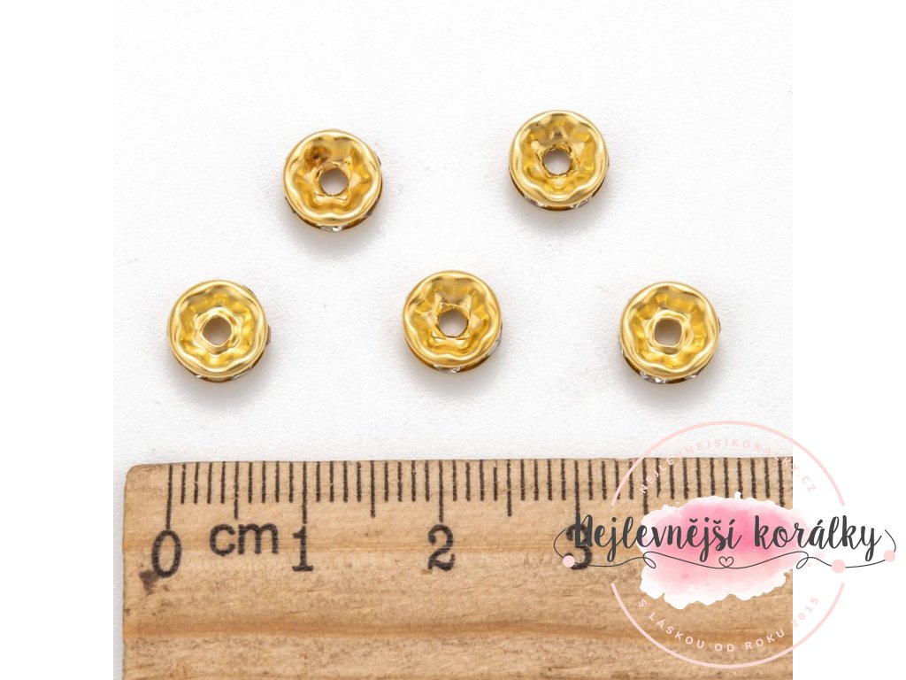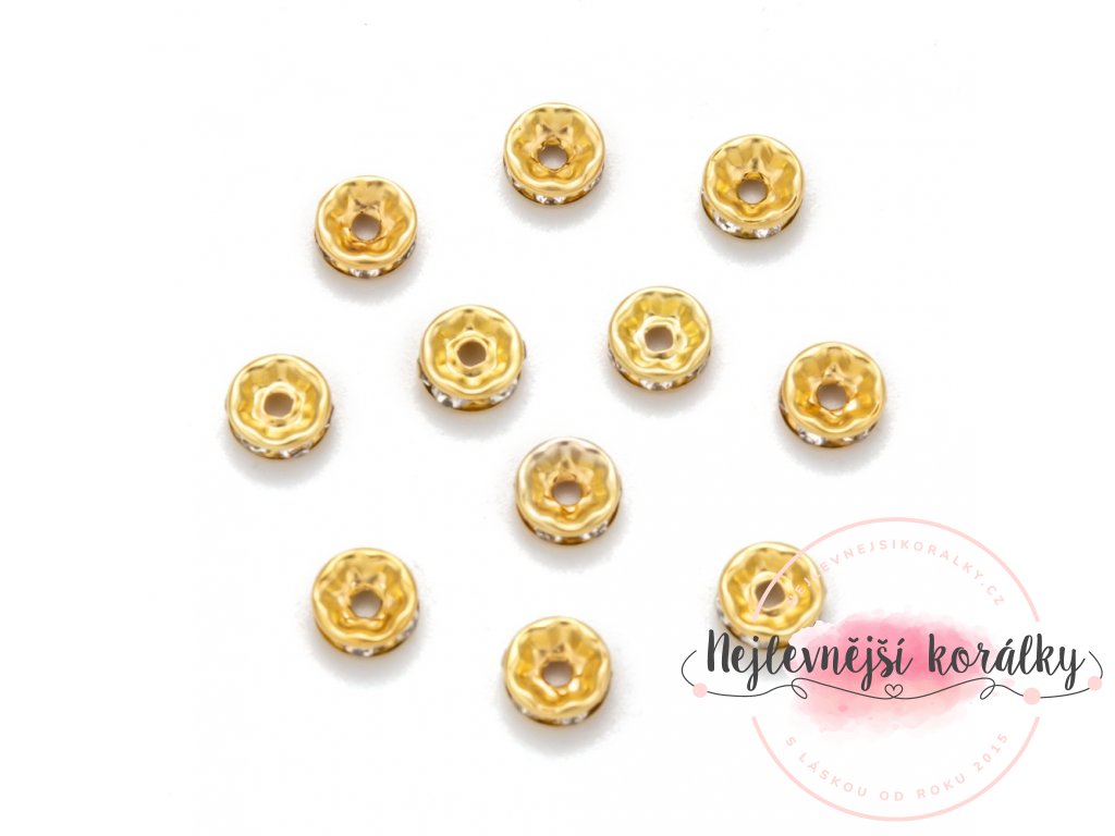 Mosazné šatonové neboli štrasové rondelky s pokovením ve zlaté barvě.