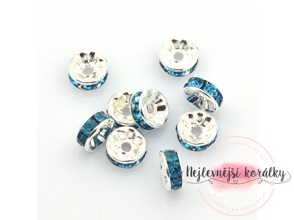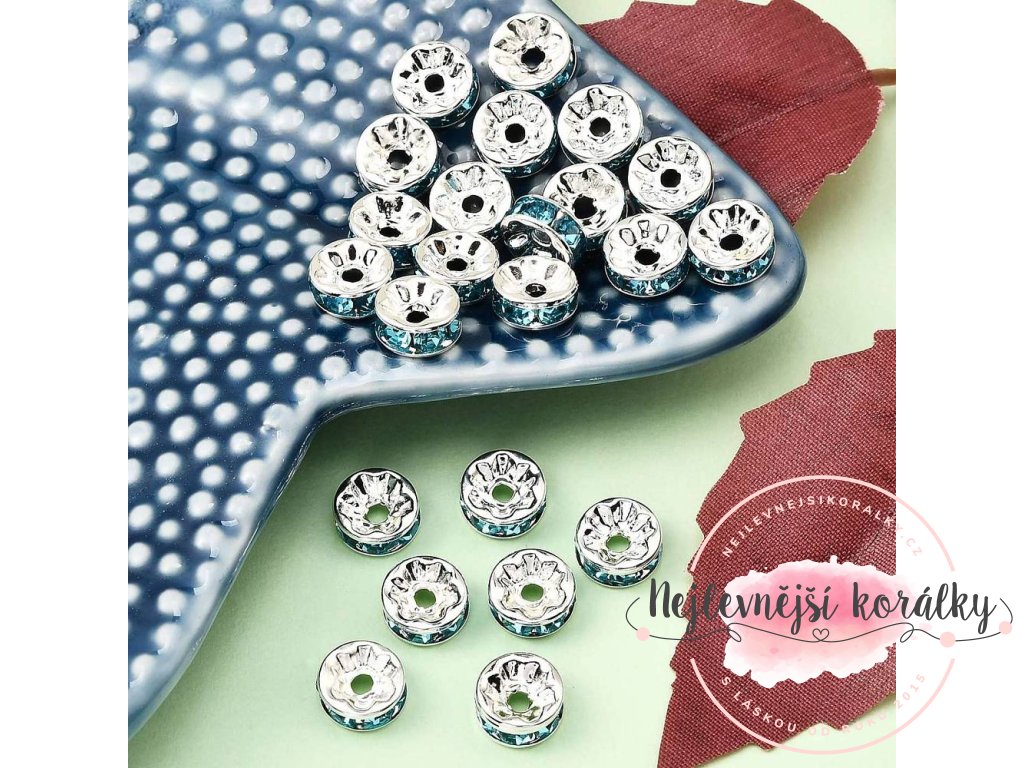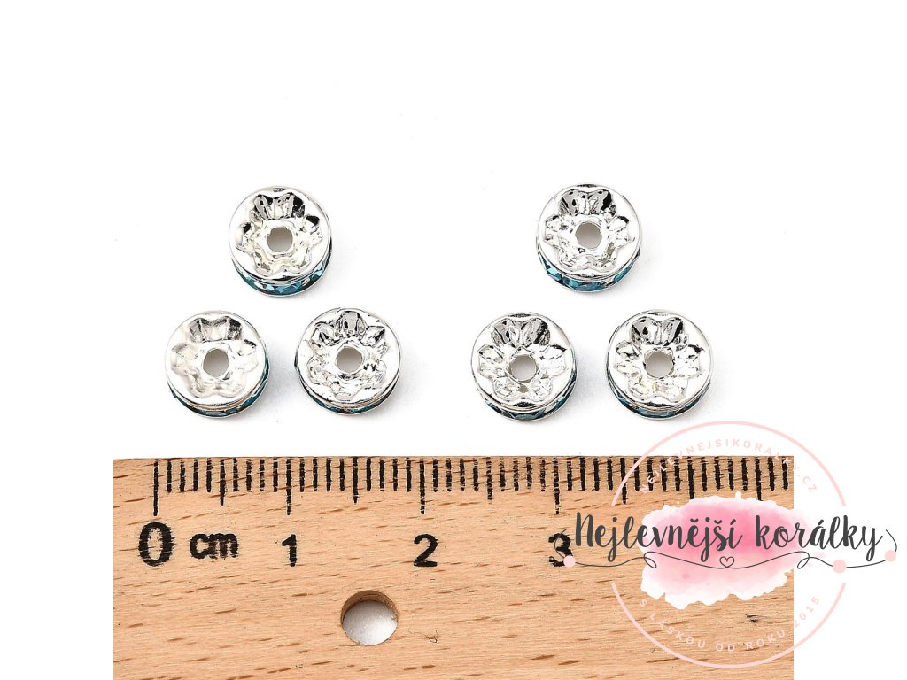 Rondelka s kamínky kvality A, barva kamínků světle modrá - akvamarínová.