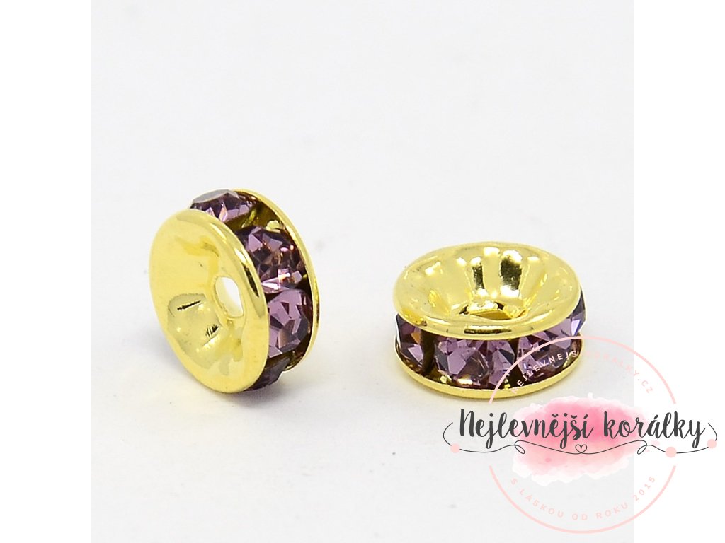 Rondelka s kamínky kvality A, barva kamínků ametystová.