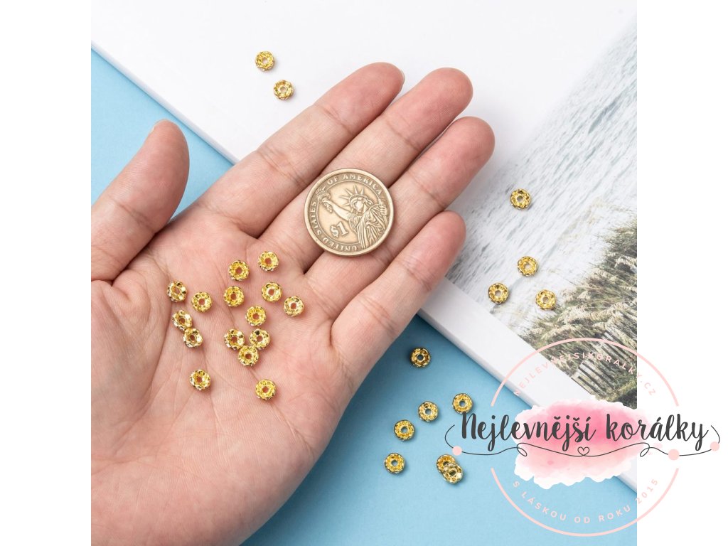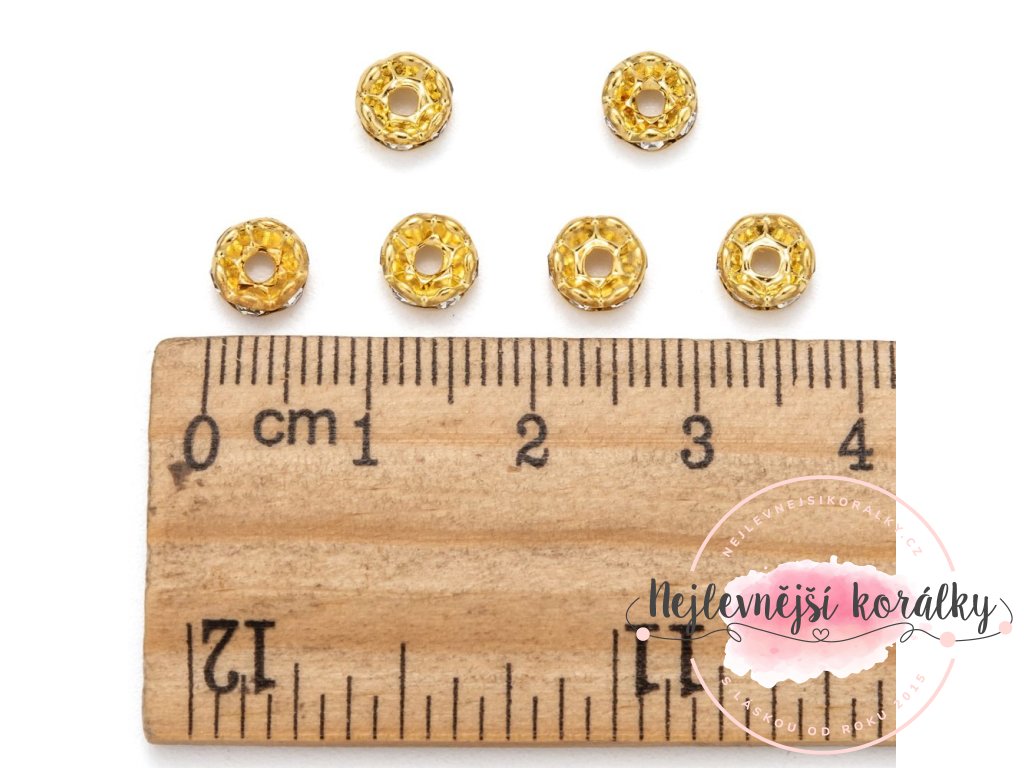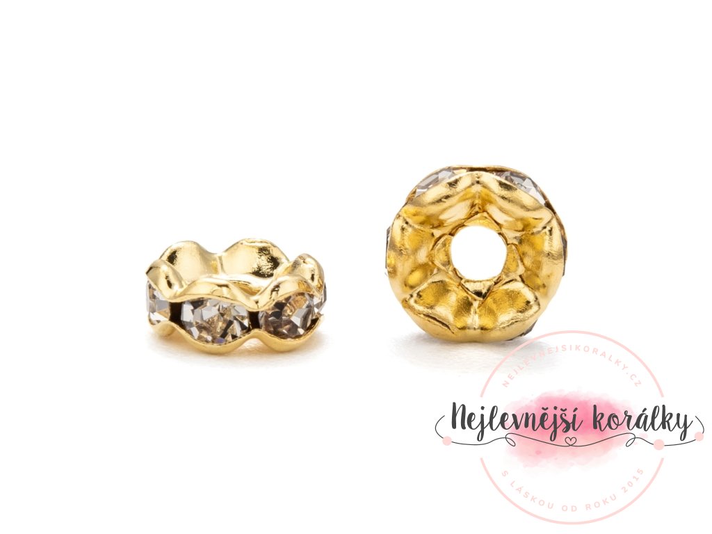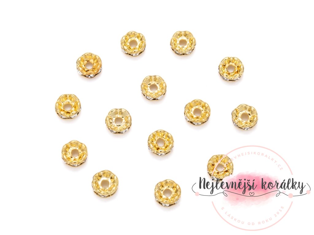 Rondelka ve zlaté barvě s kamínky kvality A, barva kamínků čirá.