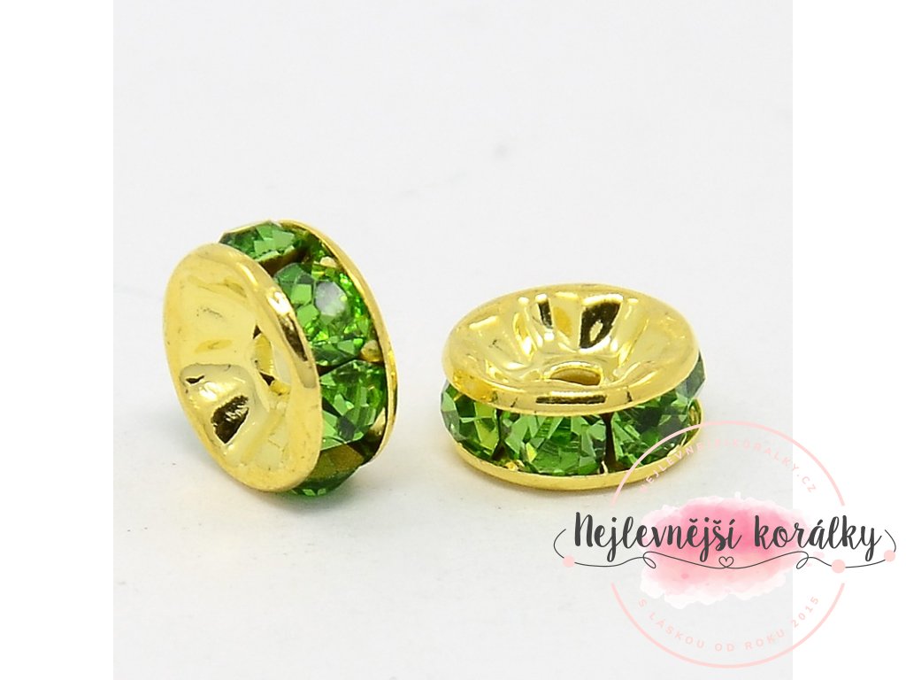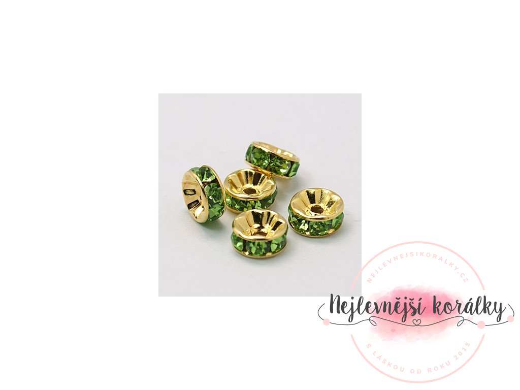 Rondelka s kamínky kvality A, barva kamínků zelená.
