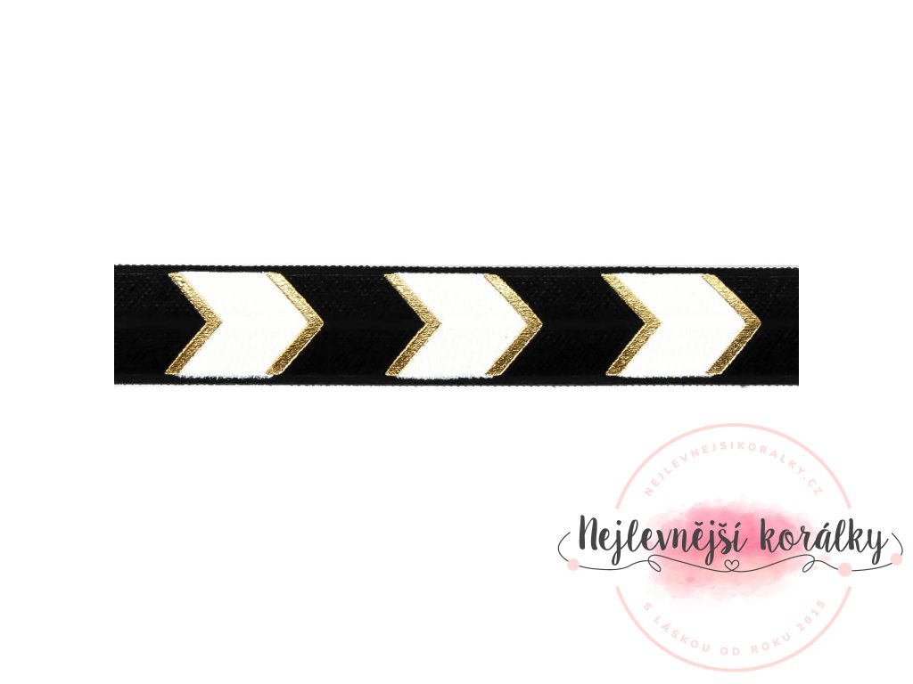 Lemovací pruženka v černém provedení s motivem bílo - zlaté šipky o šířce 15 mm.