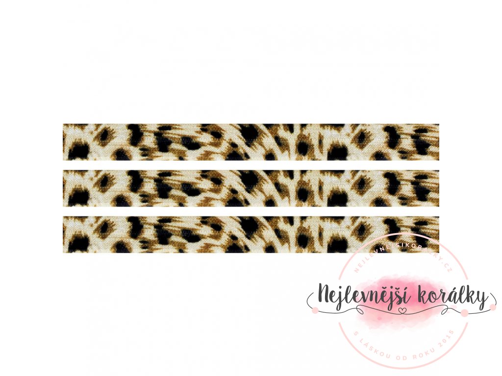 Lemovací pruženka v režném provedení s leopardím motivem o šířce 15 mm.