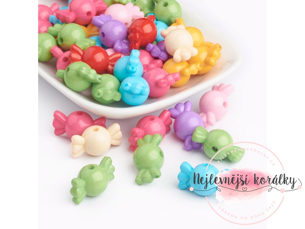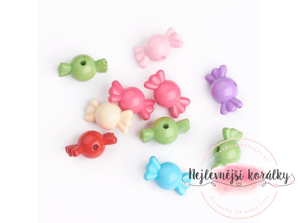 Akrylové korálky - bonbonky - barevné - 12 x 21 x 12 mm - 10 ks