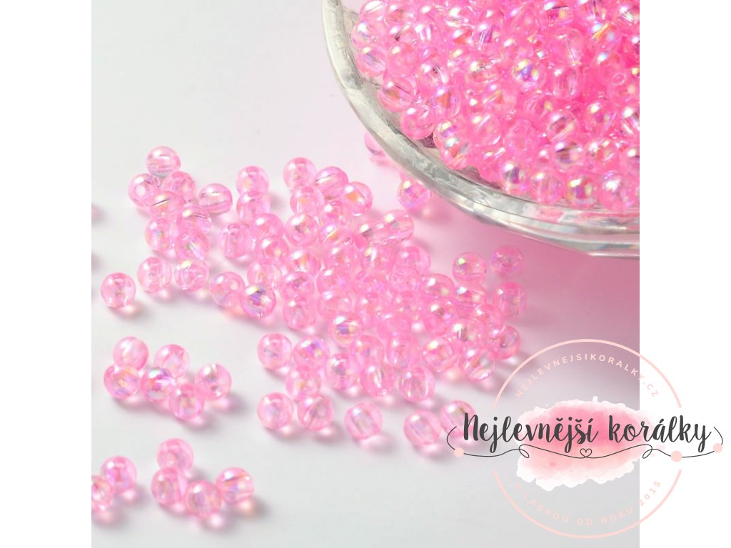 Akrylové korálky - Eco Friendly - AB efekt - růžové - ∅ 4 mm - 10 ks