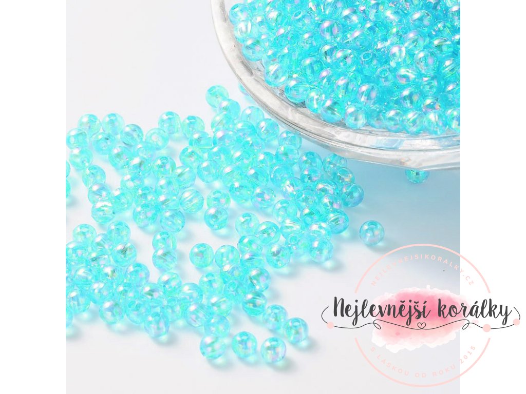 Akrylové korálky - Eco Friendly - AB efekt - tyrkysové - ∅ 4 mm - 10 ks