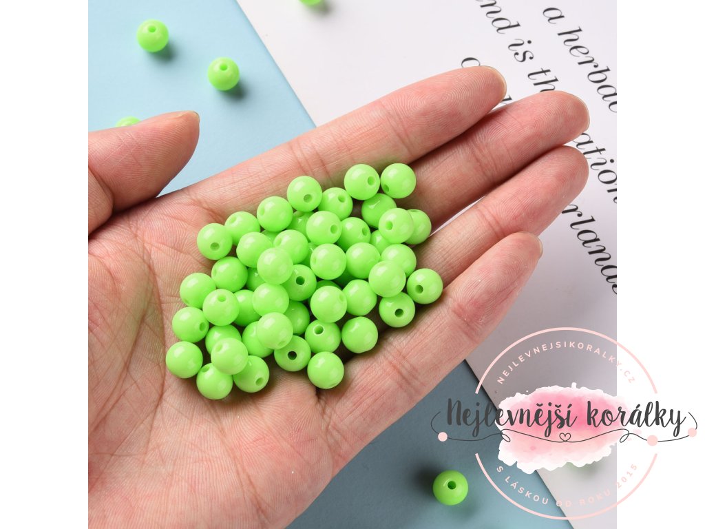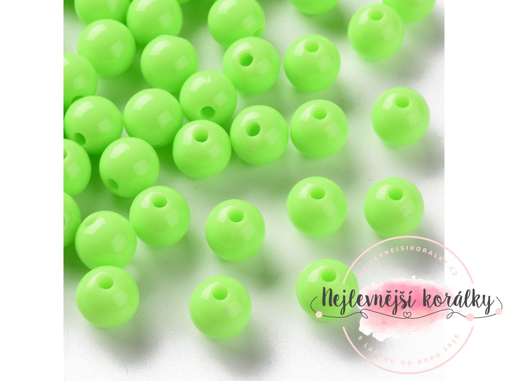 Akrylové korálky - fosforově zelené - ∅ 8 mm - 10 ks