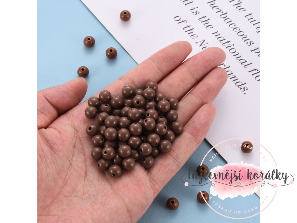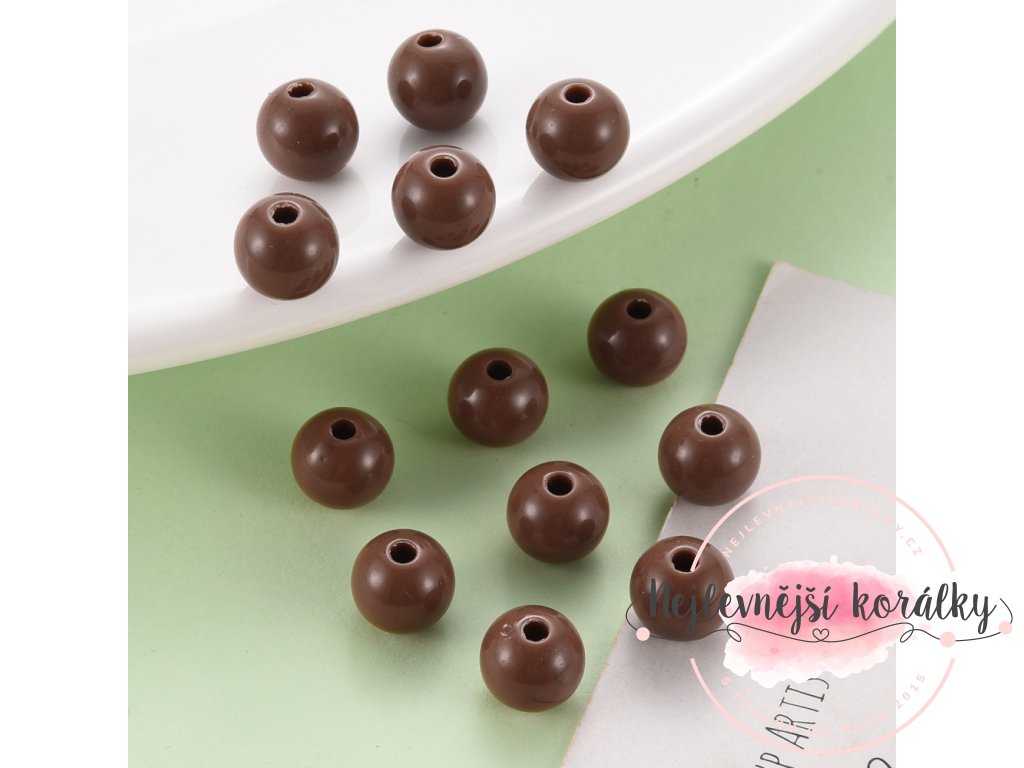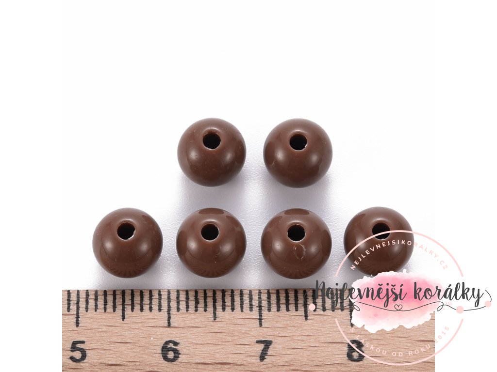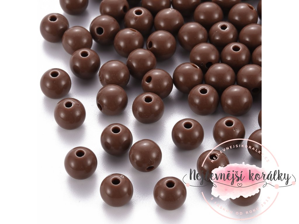 Akrylové korálky v hnědém provedení o velikosti 8 mm s velikostí průvleku 2 mm.