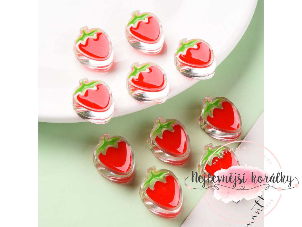 Akrylové korálky - jahoda - 25,5 x 19 x 9 mm - 1 ks