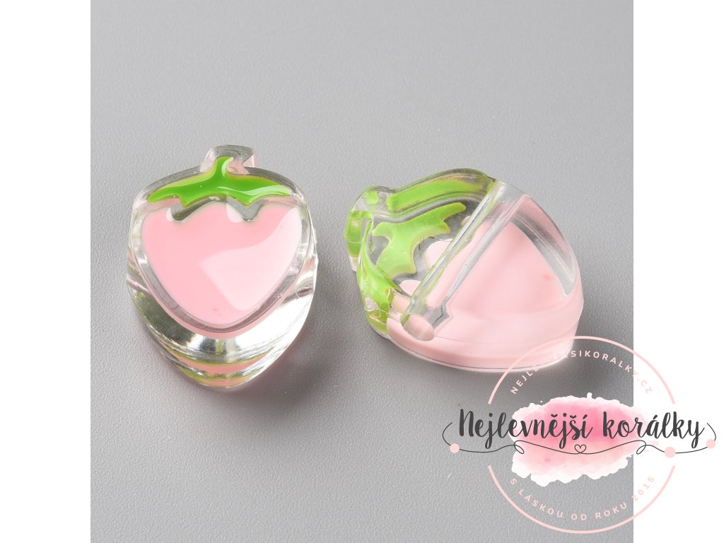 Akrylové korálky - jahoda - růžová - 25,5 x 19 x 9 mm - 1 ks