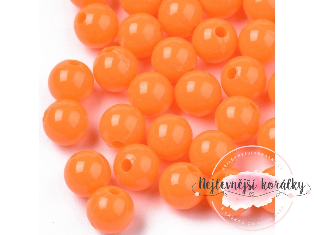 Akrylové korálky v oranžovém provedení o velikosti 6 mm s velikostí průvleku cca 1,4 mm.