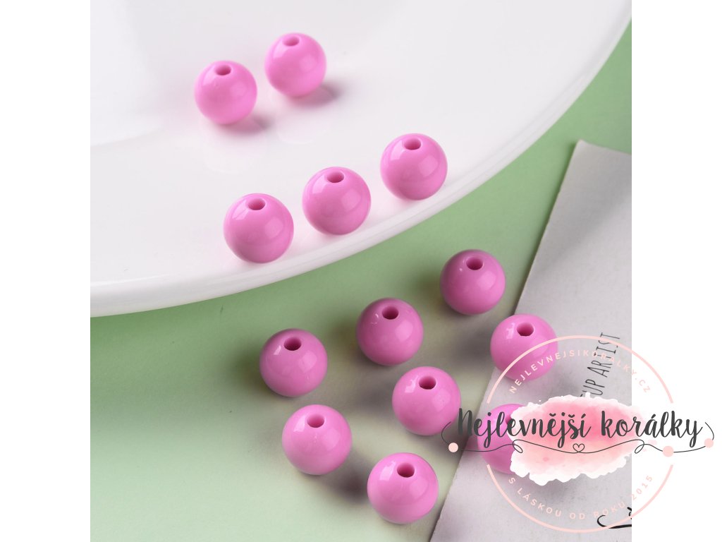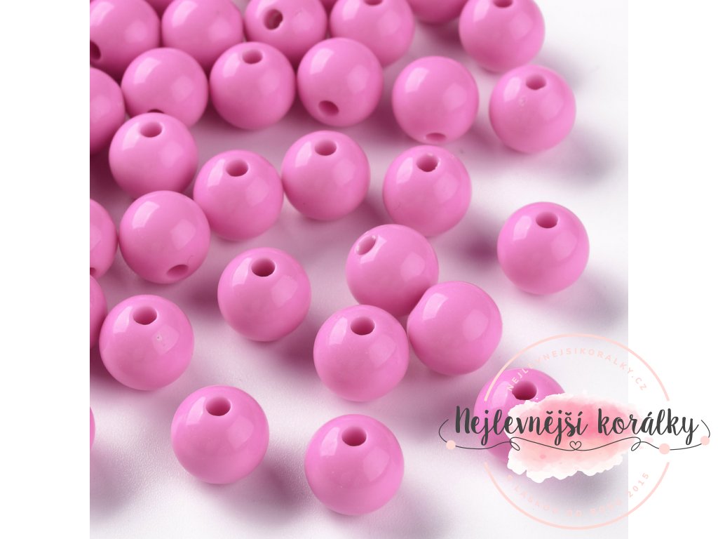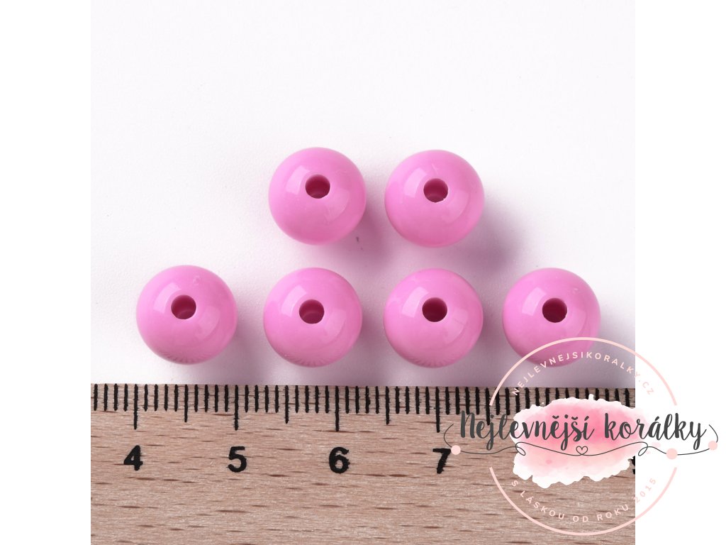 Akrylové korálky v růžovém provedení o velikosti cca 10 mm s velikostí průvleku cca 2 mm.
