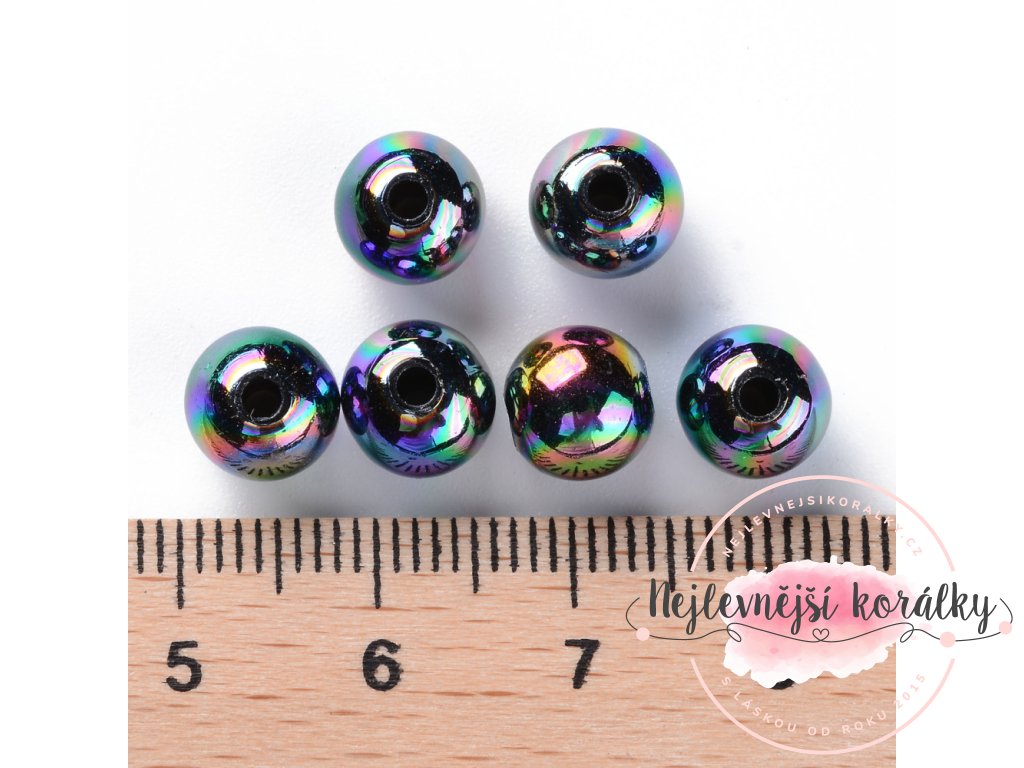 Akrylové korálky s AB efektem - černé - ∅ 8 mm - 10 ks