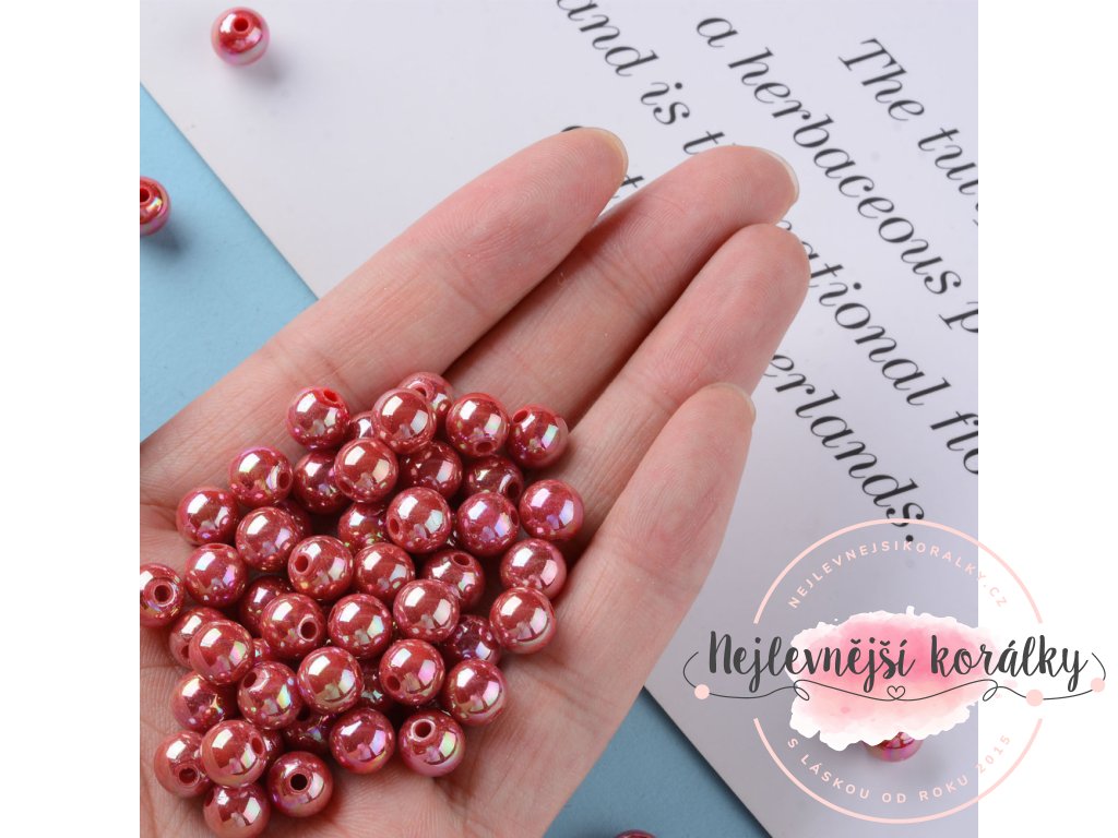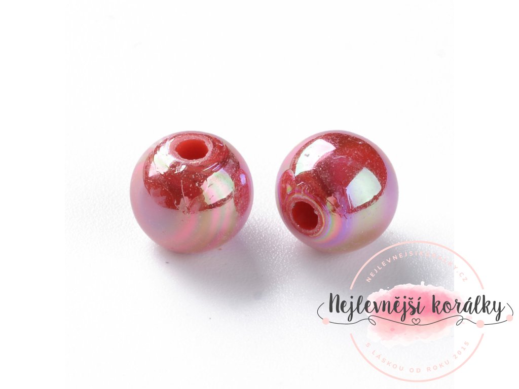 Akrylové korálky s AB efektem - červené - ∅ 8 mm - 10 ks