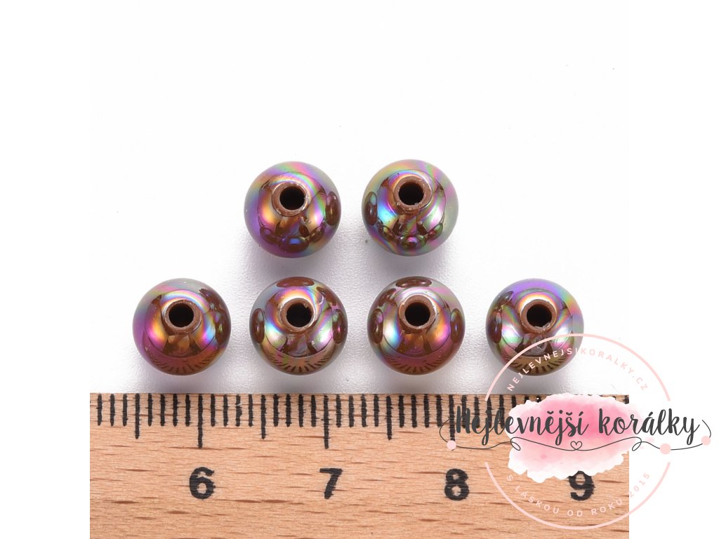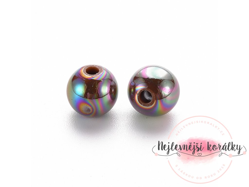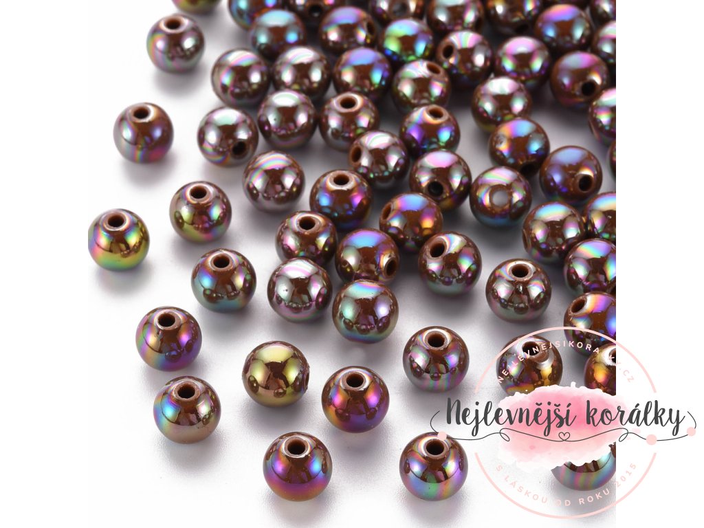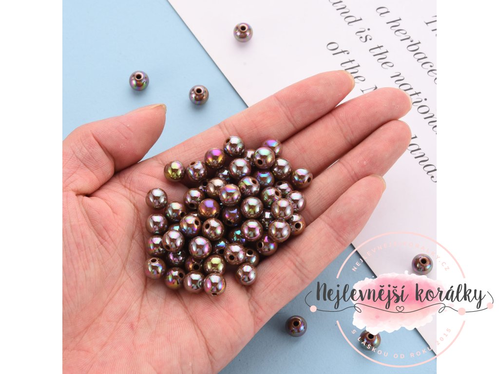 Akrylové korálky s AB efektem - hnědé - ∅ 8 mm - 10 ks