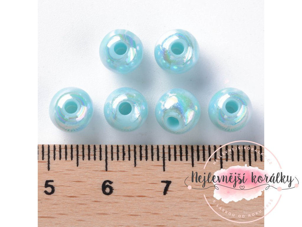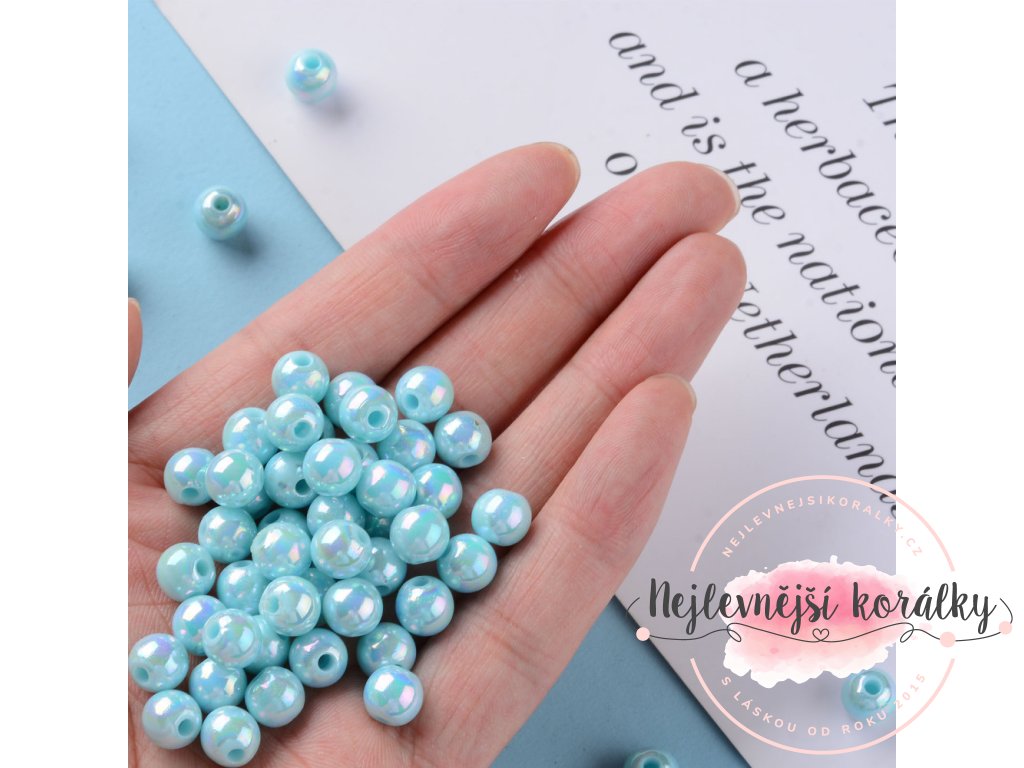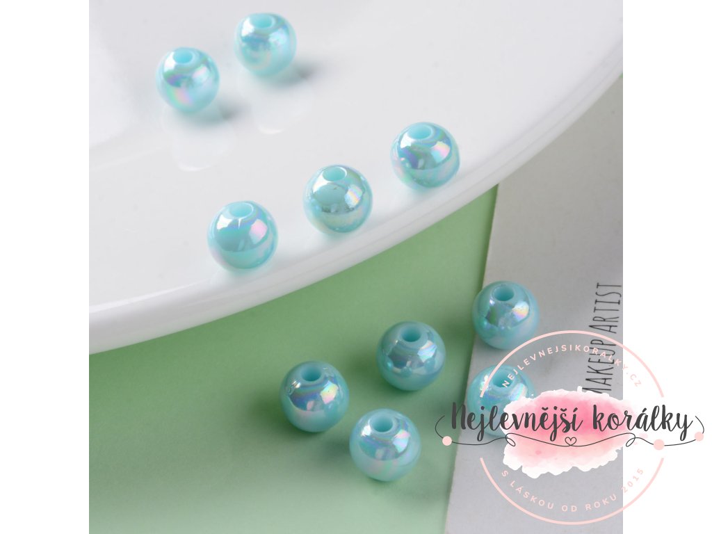 Akrylové korálky s AB efektem - tyrkysové - ∅ 8 mm - 10 ks
