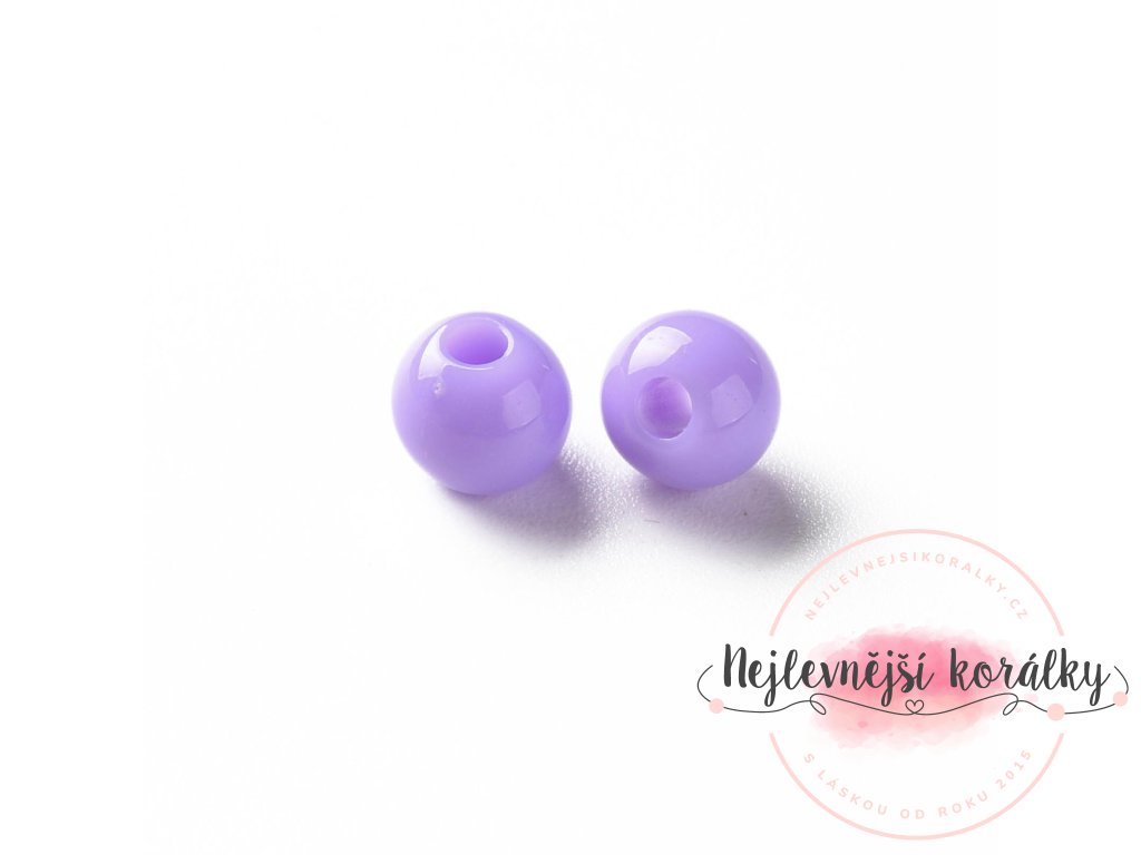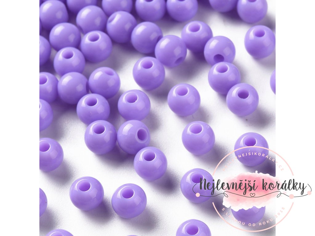 Akrylové korálky ve fialovém provedení o velikosti 6 mm s velikostí průvleku 1,8 mm.