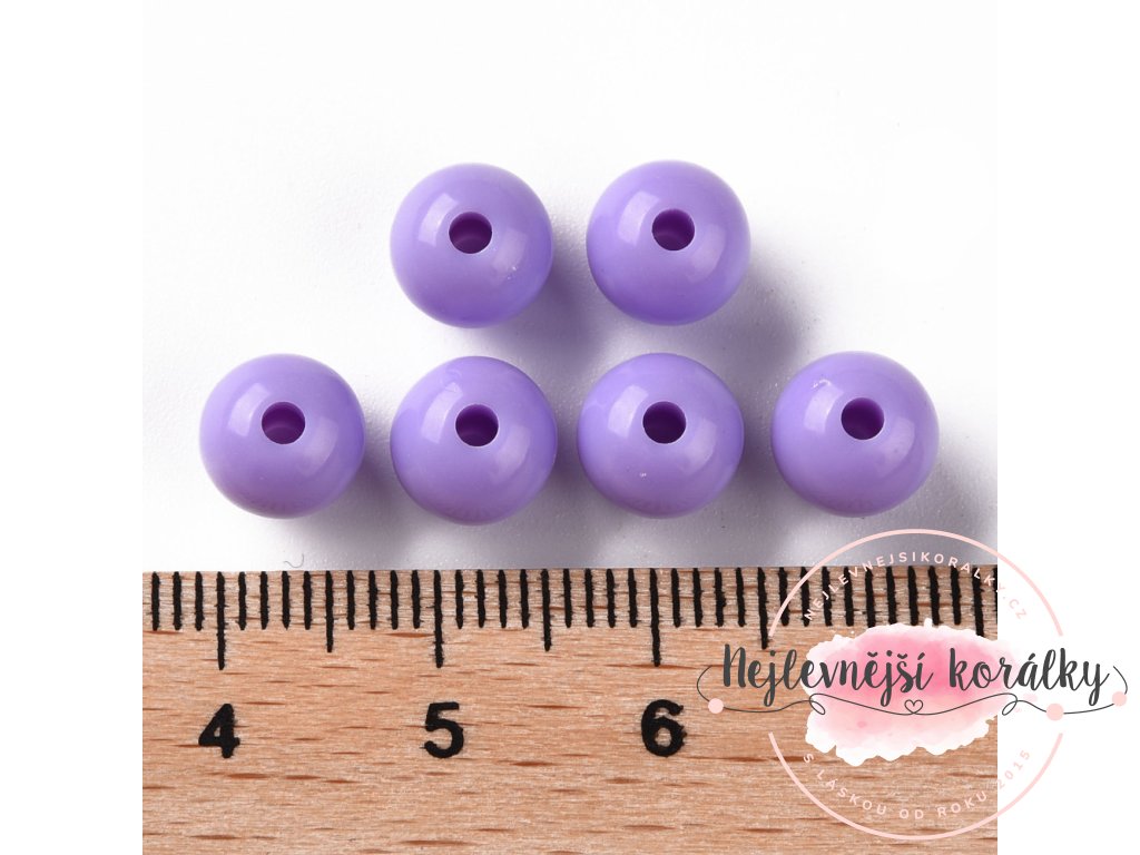 Akrylové korálky ve fialovém provedení o velikosti 8 mm s velikostí průvleku 2 mm.