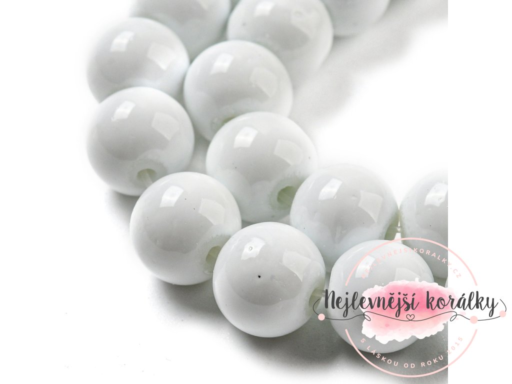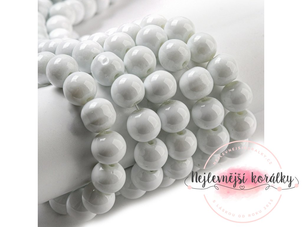 Skleněné korálky - bílé - ∅ 8 mm - 10 ks