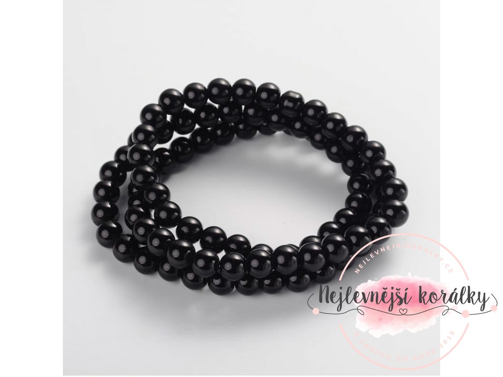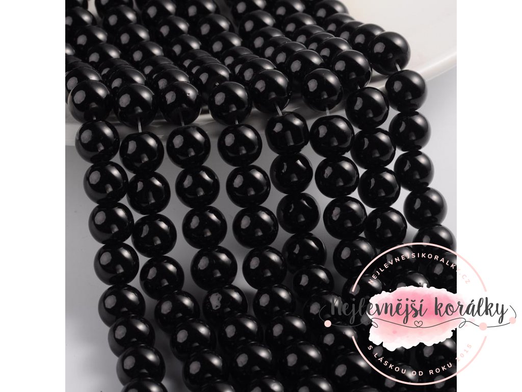Skleněné korálky - černé - ∅ 8 mm - 10 ks