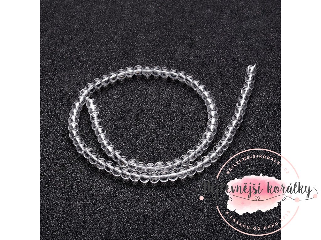 Skleněné korálky v čirém provedení o velikosti 4 mm s velikostí průvleku 1 mm.