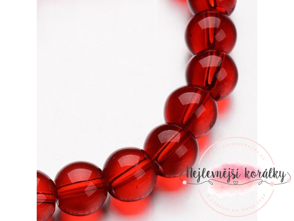 Skleněné korálky - průsvitné - světle červené - ∅ 6 mm - 10 ks