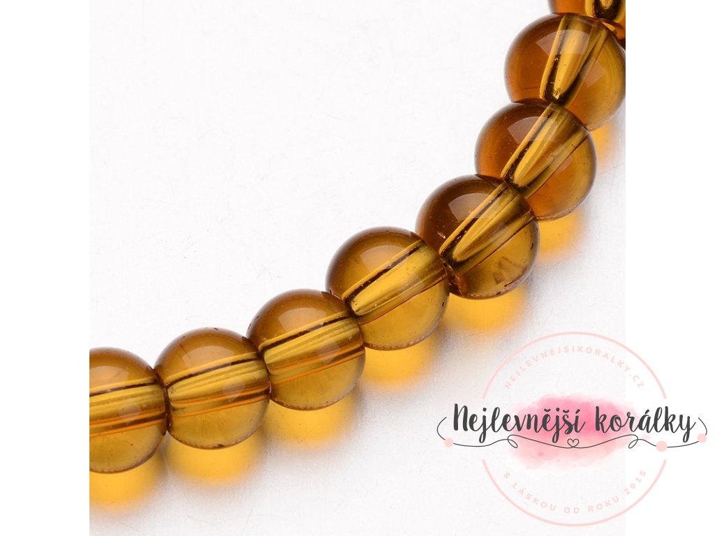 Atraktivní skleněné průsvitné korálky v medově zlatém provedení o velikosti 8 mm s velikostí průvleku 1 mm.