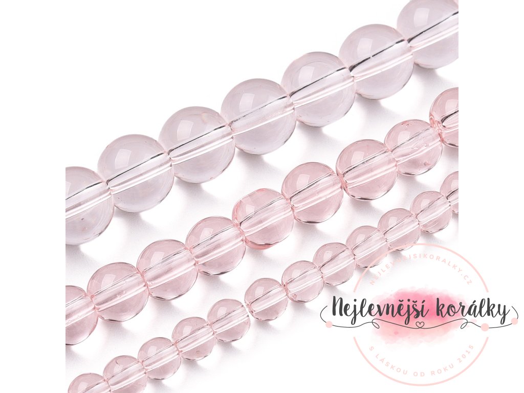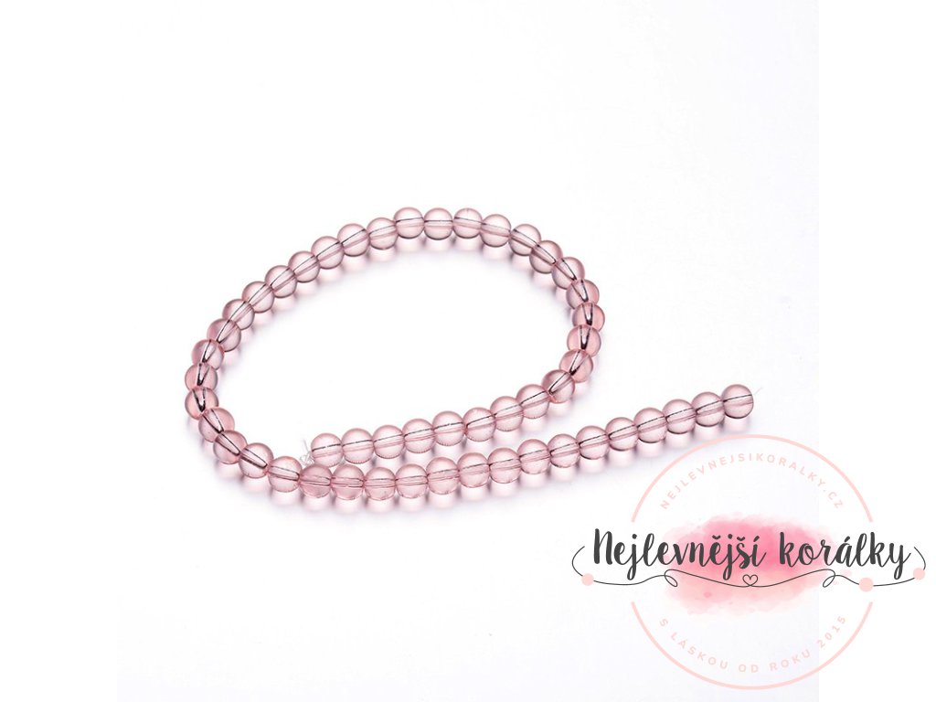Skleněné korálky - průsvitné - světle růžové - ∅ 6 mm - 10 ks