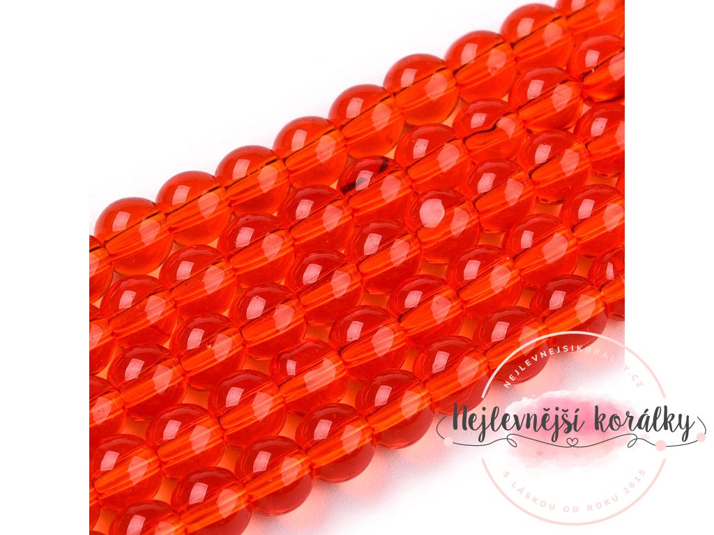 Skleněné korálky - průsvitné - světle červené - ∅ 6 mm - 10 ks