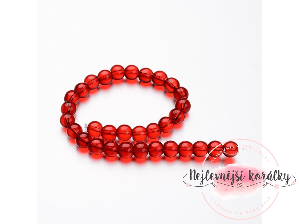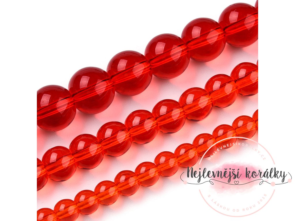 Atraktivní skleněné průsvitné korálky v červeném provedení o velikosti 6 - 6,5 mm s velikostí průvleku 1,4 mm.