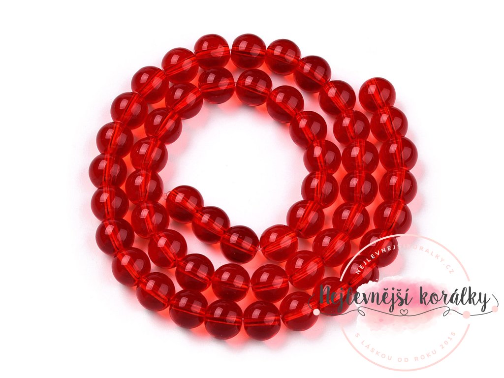 Skleněné korálky - průsvitné - světle červené - ∅ 8 mm - 10 ks