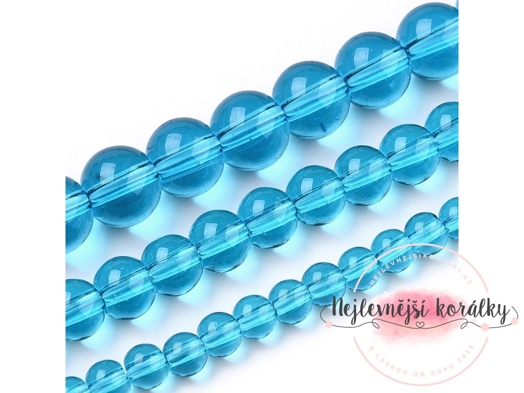 Skleněné korálky - průsvitné - světle modré - ∅ 6 mm - 10 ks