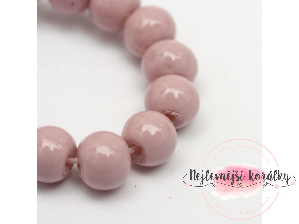 Skleněné korálky - starorůžové - ∅ 8 mm - 10 ks