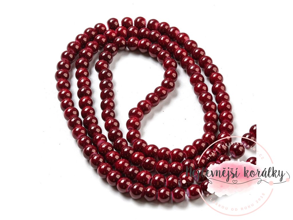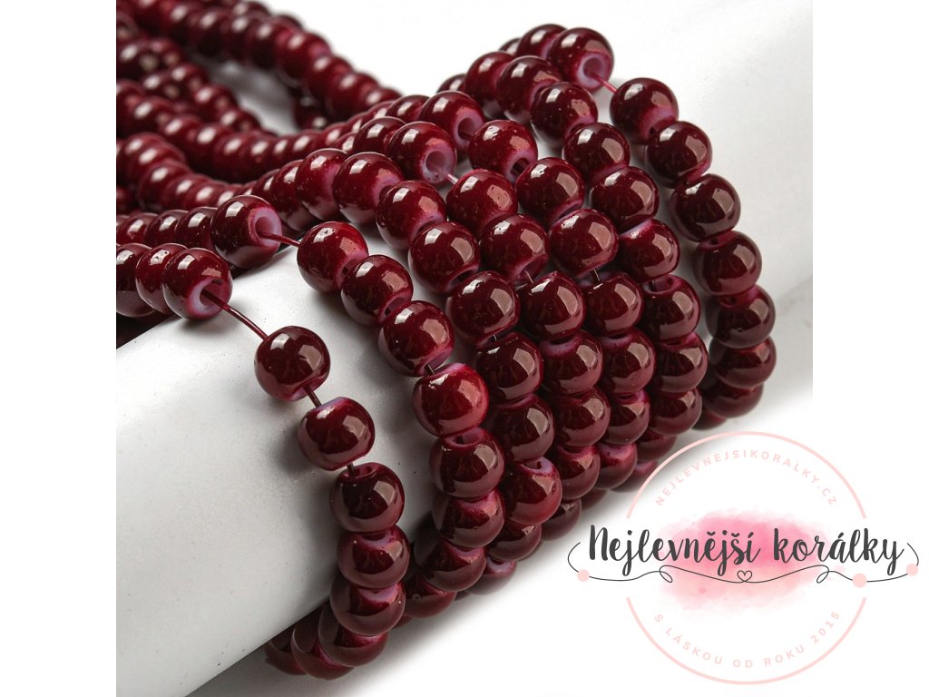 Skleněné korálky v tmavě červeném provedení o velikosti 6 mm s velikostí průvleku 1,3 ~ 1,6 mm.
