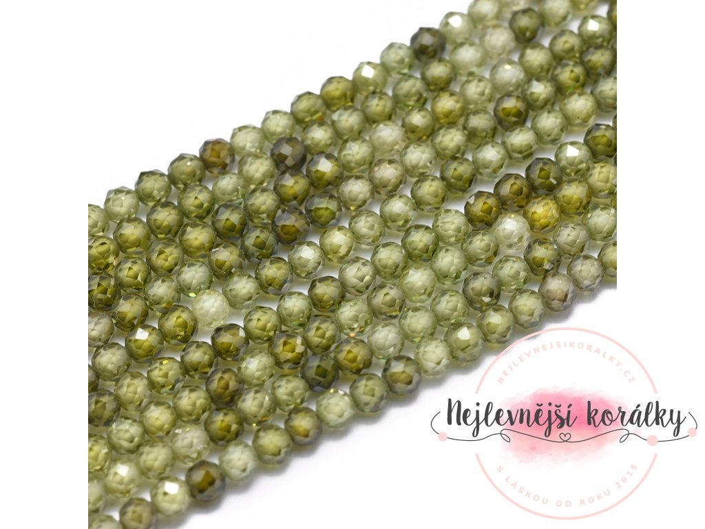 Korálek z kubického zirkonu - zelený - broušený - ∅ 3 mm - 1 ks