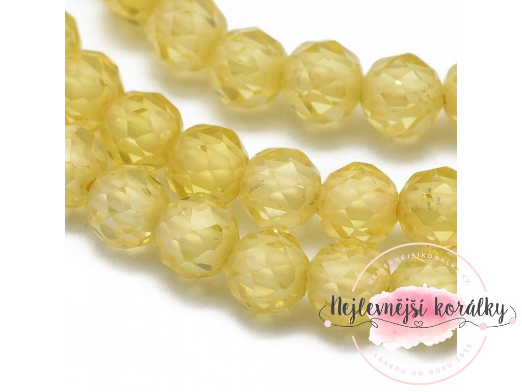 Korálky z kubického zirkonu ve žluté barvě a fasetovaném (broušeném) provedení.